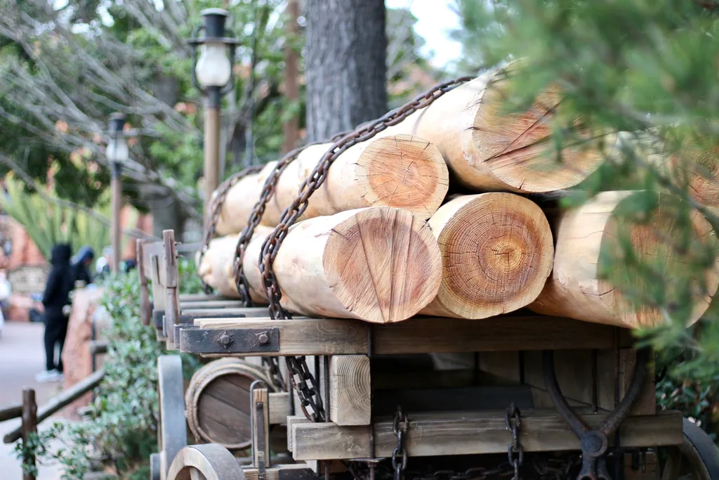 「ビッグサンダー・マウンテン」付近のリアル丸太。「作られた世界にある本物」って味わい深くて大好き。