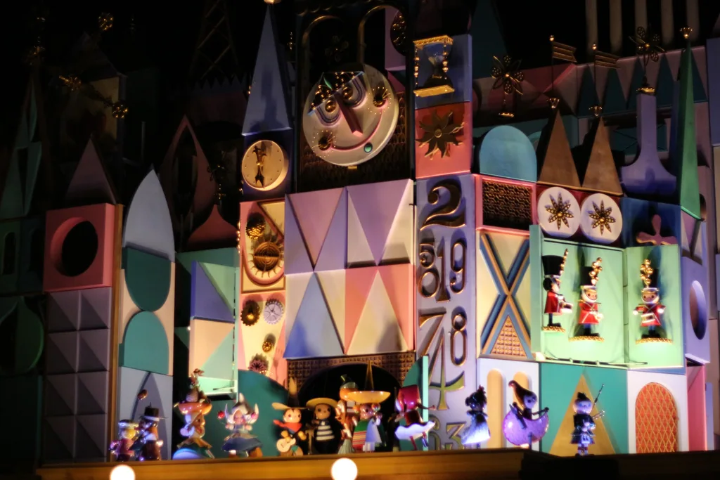 ということで、「イッツ・ア・スモールワールド」へ。暗いな!