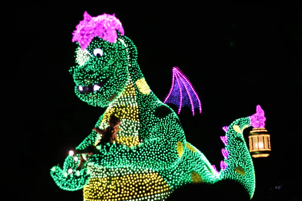 イッツ・ア・スモールワールドを出ると、ディズニーランドの夜の定番、「エレクトリカルパレード」が始まっていた。せっかく今日は一眼レフを持っているんだ。立ち止まって撮ってみよう。夜の撮影は「ISO感度」を上げるといいらしい、という初心者知識で、ちまちま設定をいじってみる。
