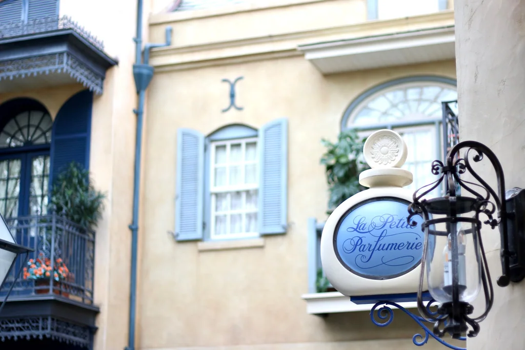 こちらもロイヤルストリート内にある香水屋さん「ラ・プティート・パフュームリー」の看板。私はここでしか香水を買ったことがない。ディズニーランドを香水屋さんとして使っている。