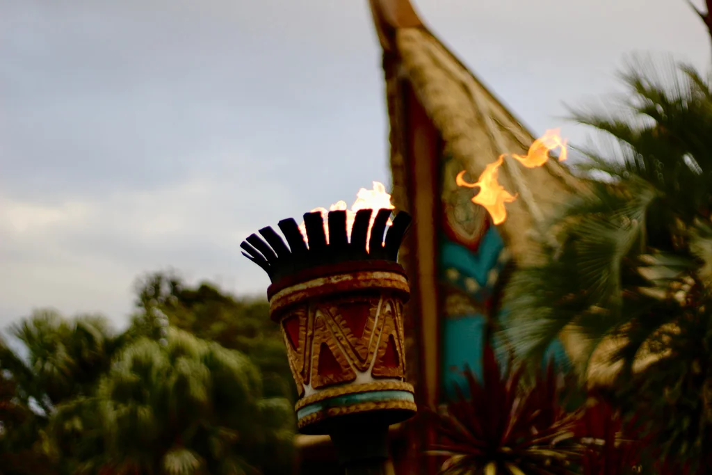 「魅惑のチキルーム」入口の炎。一眼レフって「メラメラ」を捉えられるんだな。でもプロならもっと上手に撮れるような気がする。ちょっと悔しい。