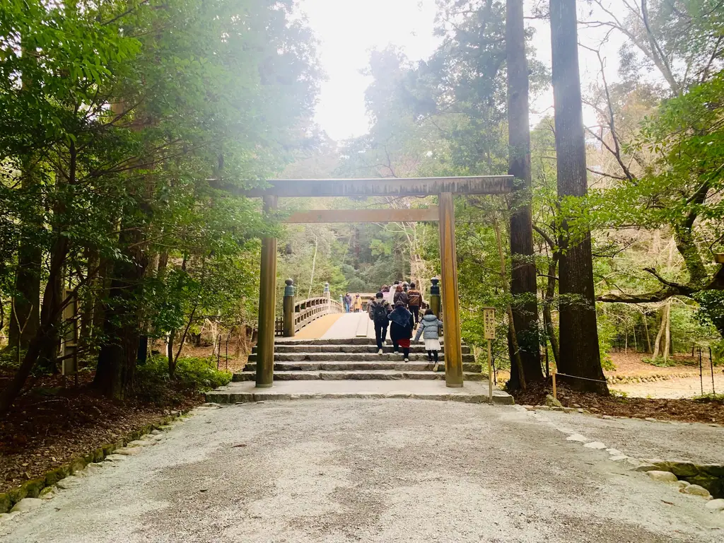 橋の上から周囲を見渡すと、本当に自然に囲まれた良い場所だなと思います。神宮の森は伊勢市の約4分の1を占めるそうです。夏から秋にかけては美しい新緑や紅葉が見られるらしいので、次は秋に行きたいですね。