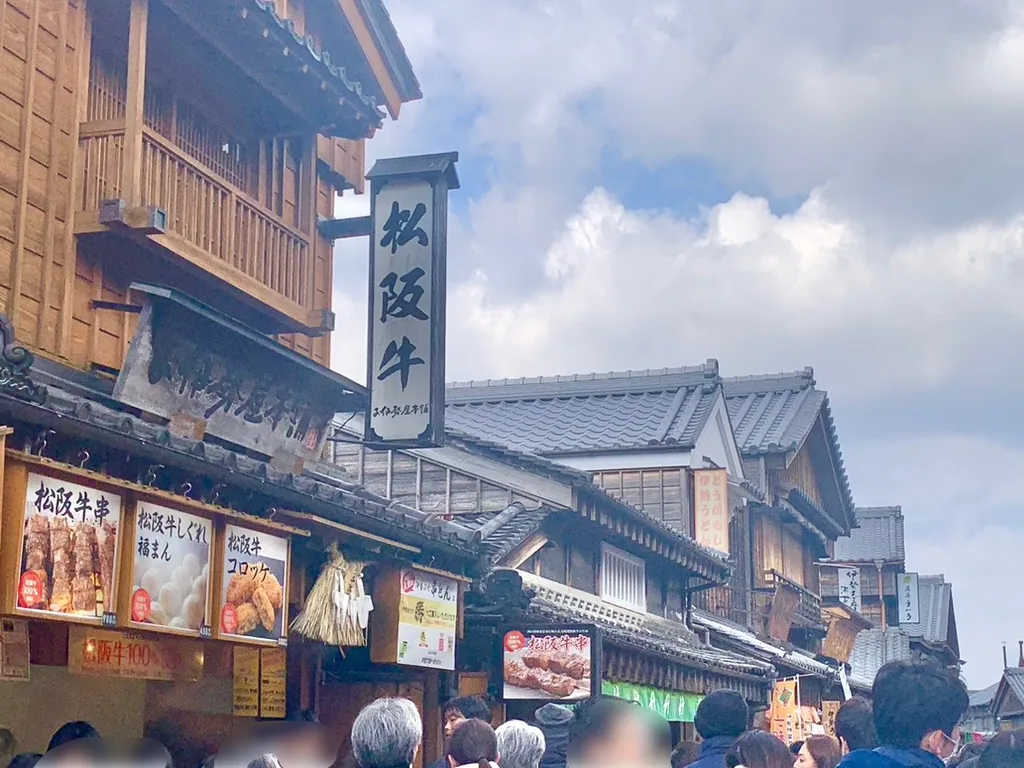 今回は、おかげ横丁で昼食をとることにしました。外宮参道と違って、おかげ横丁は食べ歩きグルメが充実しているので、いろいろたくさん食べたい人におすすめです。浅草や鎌倉と似ている気がします。