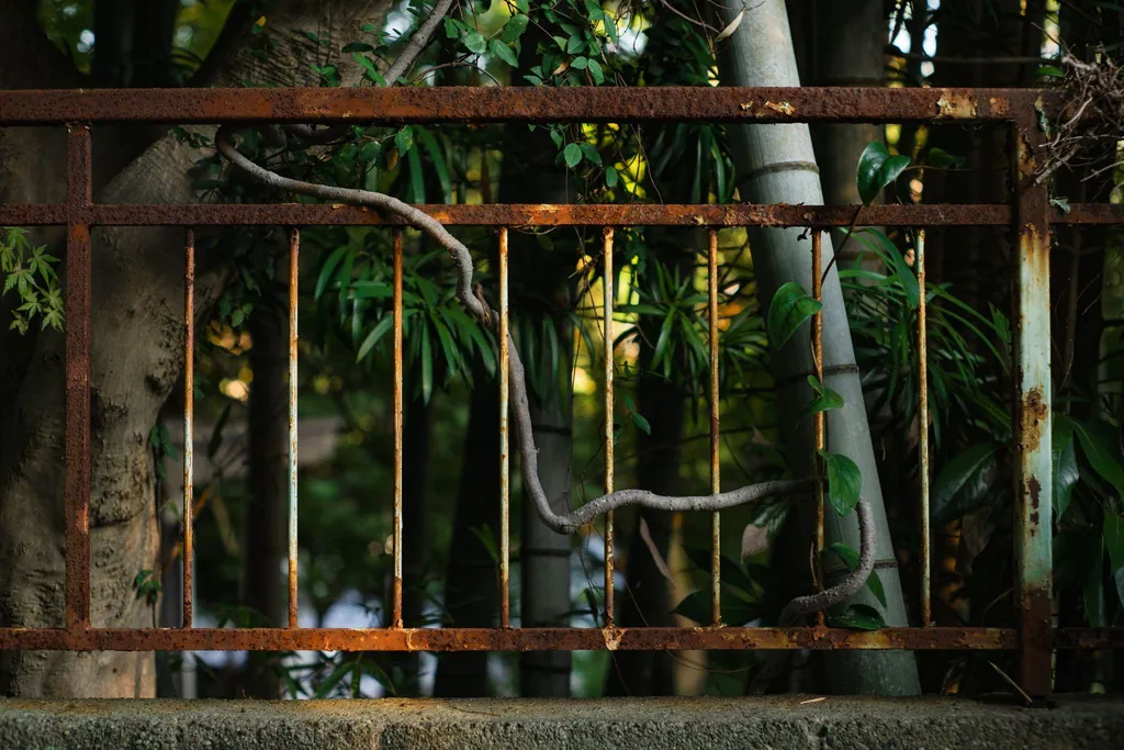 蛇のように鉄柵を縫って進む図太い蔦。空間認知能力が発達しているのかもしれない。