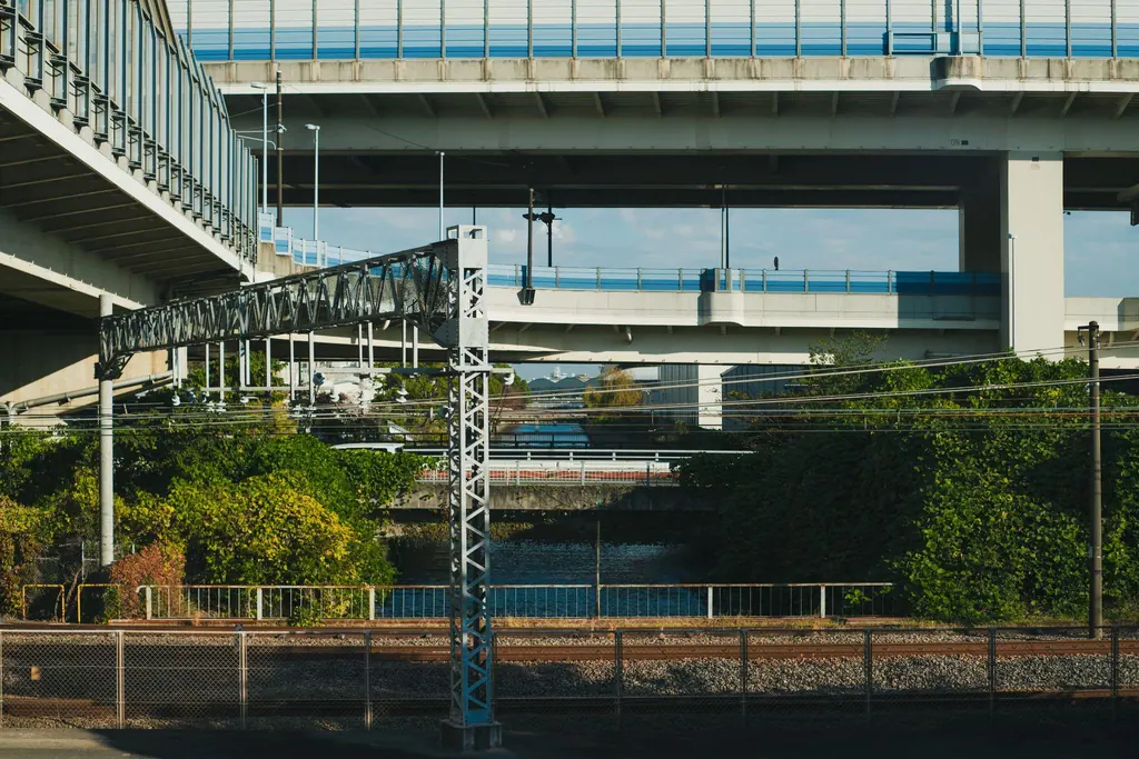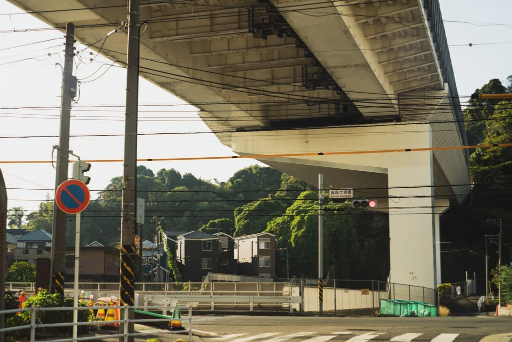 どこへ進んでも度々頭上に現れる道路。屏風浦バイパスはかつて勤めていた会社で出張の度に通っていたために馴染みが深く、初めて下からの景色を望んだ。