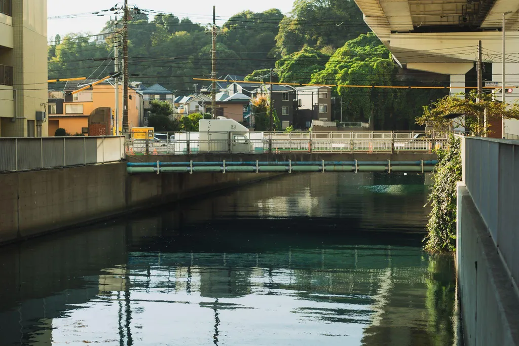 大岡川分水路の水面が静かに揺れているのを眺める。分水路とは河川の途中で水を別の水路に分けるために人工的に作られた川のことらしい。何となく海の気配を感じ始める。