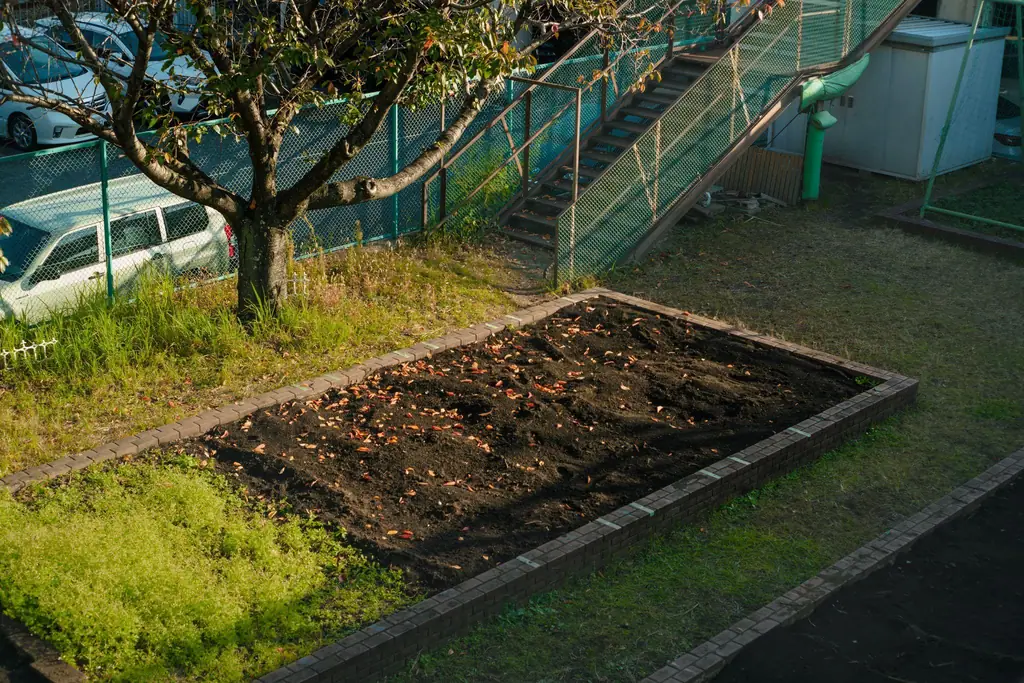 今回港とは別に楽しみにしていた景色。謎の花壇だけがある区画。降りれるはずの階段は閉ざされていて誰も踏み入ることが出来ない。何か育てている風ではあるが何のためにあるのか。