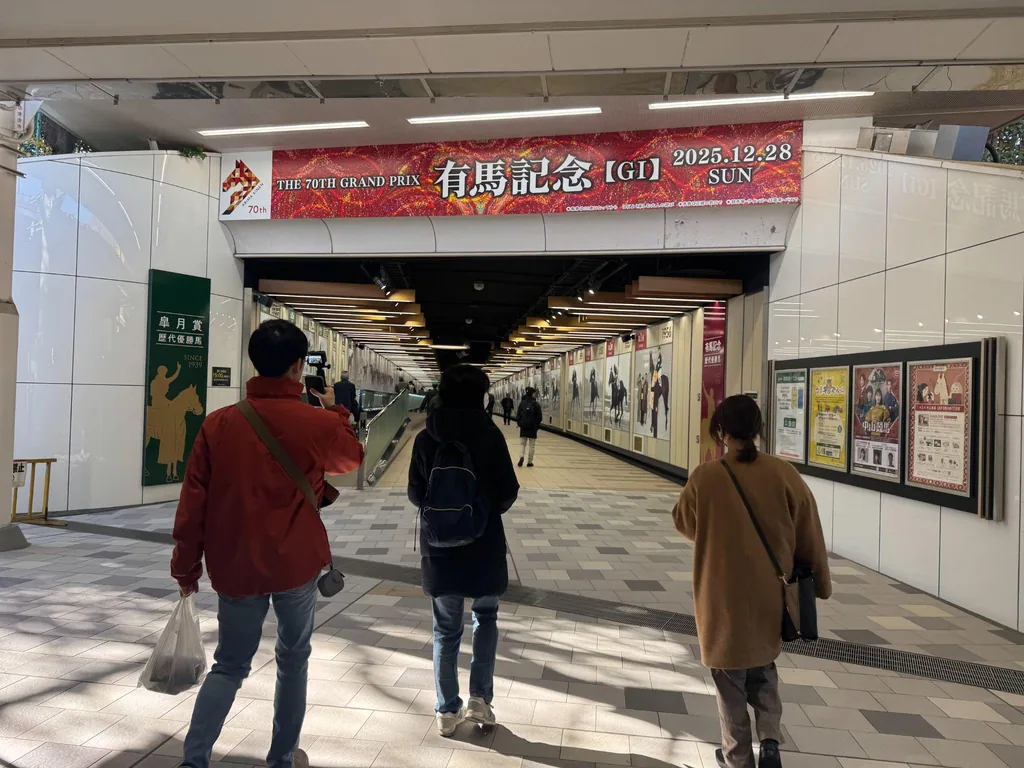 その改札から専用地下道(動く歩道あり)でアクセスできるので、迷うことなく競馬場にいくことができる。