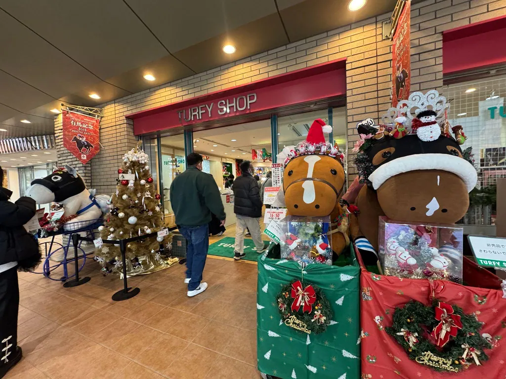 なんだかんだ二人よりも早く着いてしまったので、一旦「ターフィーショップ」に寄る。ターフィーショップはJRAの公式マスコットキャラクター「ターフィー」をはじめとする様々な競馬関連グッズを販売する専門店だ。最新の競走馬グッズをチェックし、その後馬券売り場で今やっているレースを確認する。