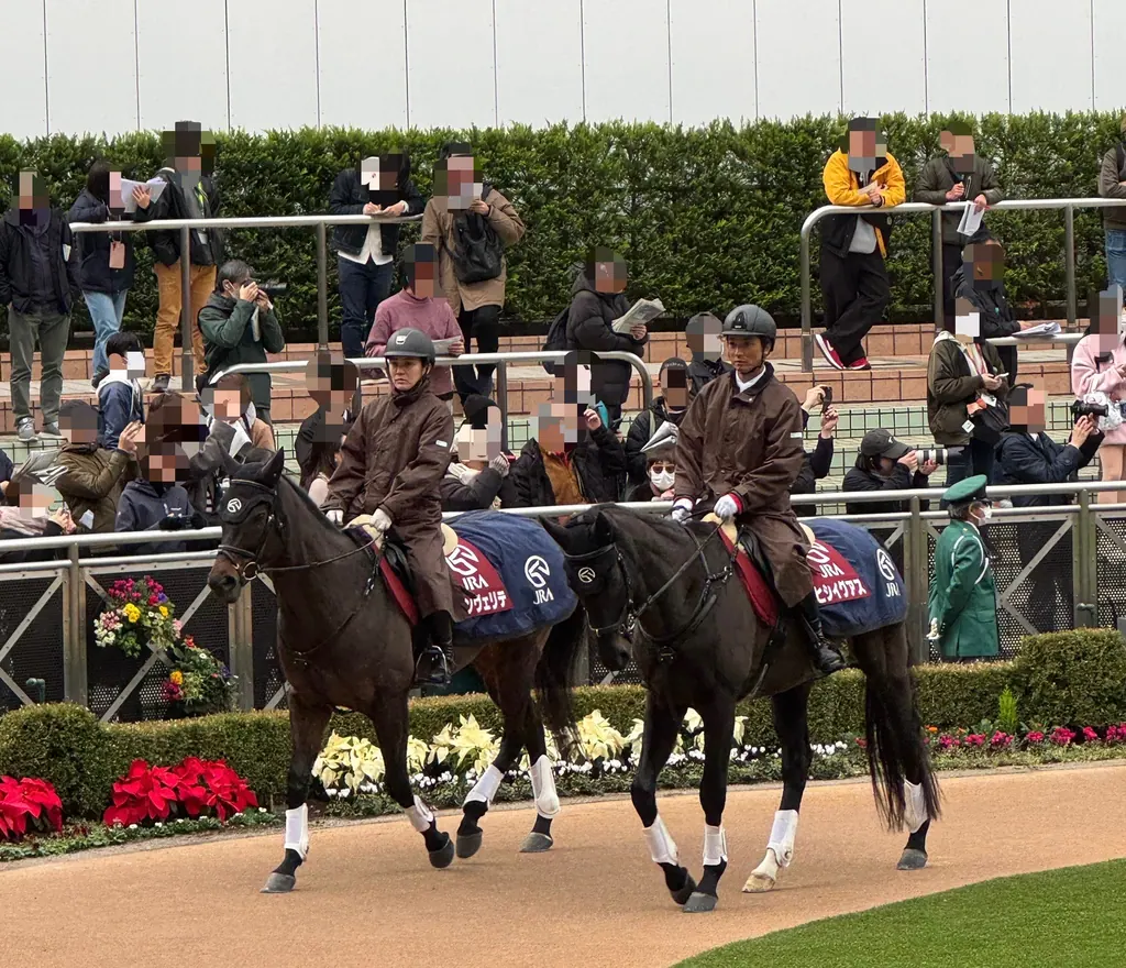 ▲誘導馬を見るのも楽しみのひとつ。リアンヴェリテ号とヒシイグアス号。ヒシイグアスは2023年の中山記念で優勝した馬なので記憶に新しい