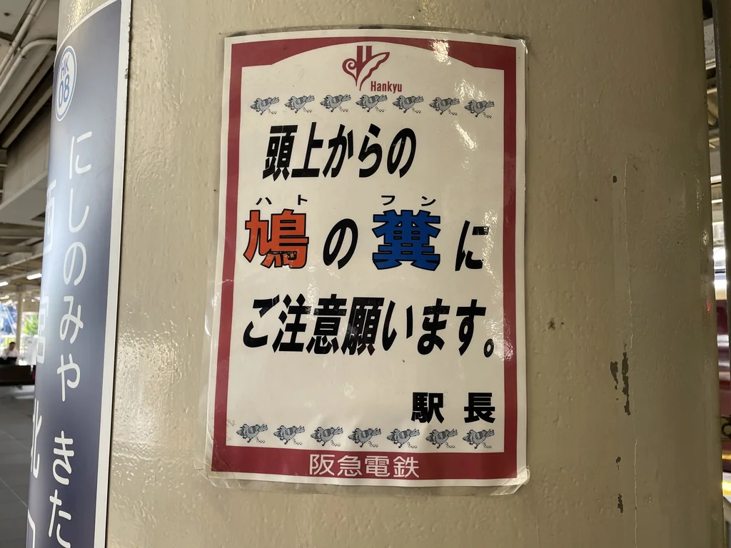 鳩は赤、糞は青。