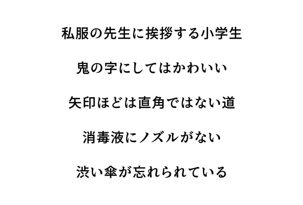 もちろん今回も路上観察ののち、道中で着想を得た自由律俳句(五七五のリズムや季語にとらわれない俳句)を最後に発表します。