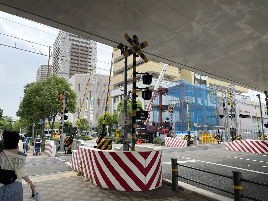 高架下ギリギリの遮断機。