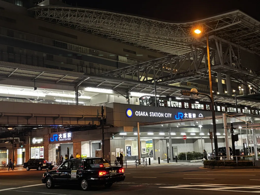 大阪駅に到着!!時刻は23:45で終電はセーフ!なんとか二晩で歩き切ることができました。
