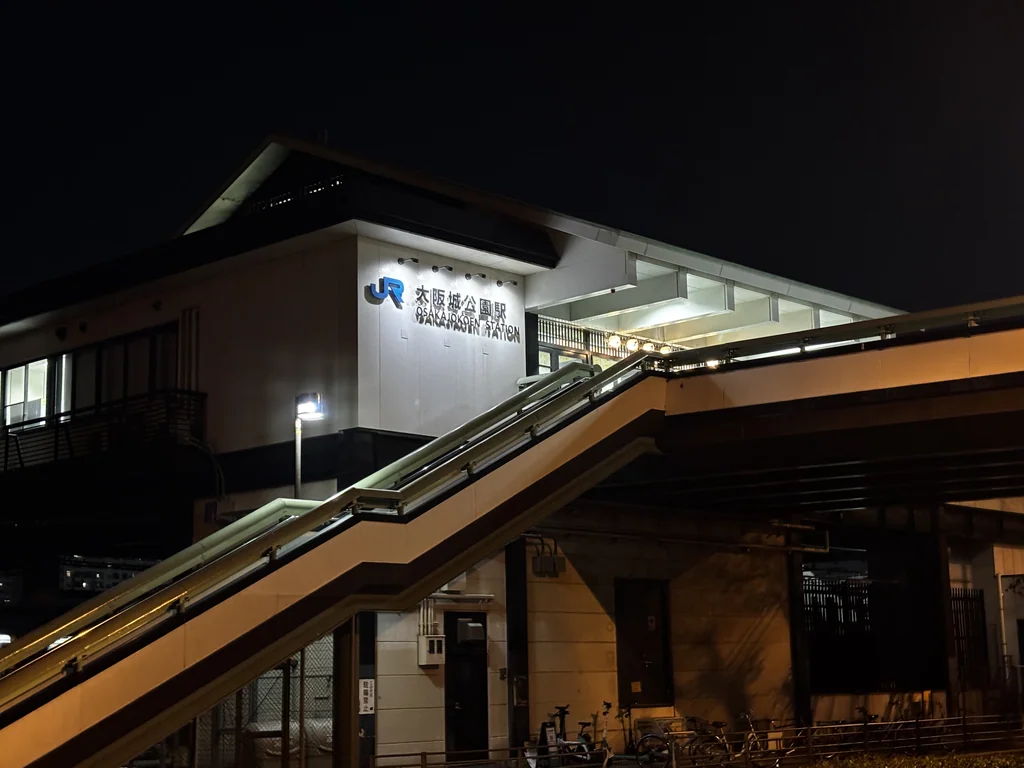 5駅目の大阪城公園前駅に到着です。先ほどのスン...はお城周りの公園の静けさでした。