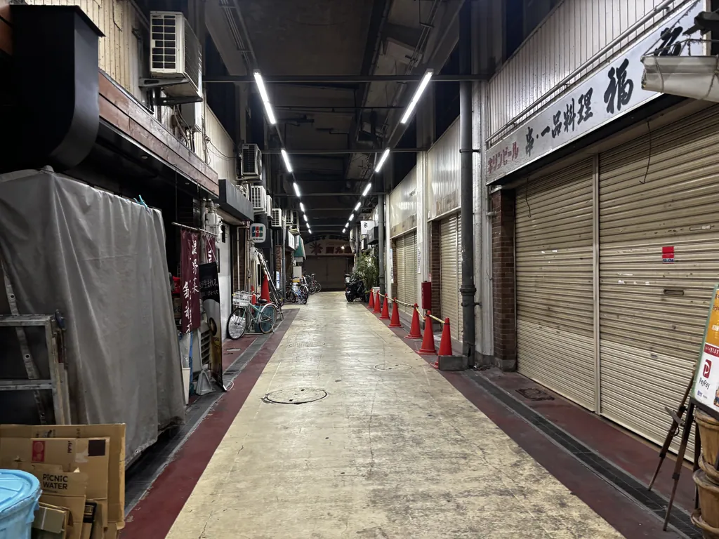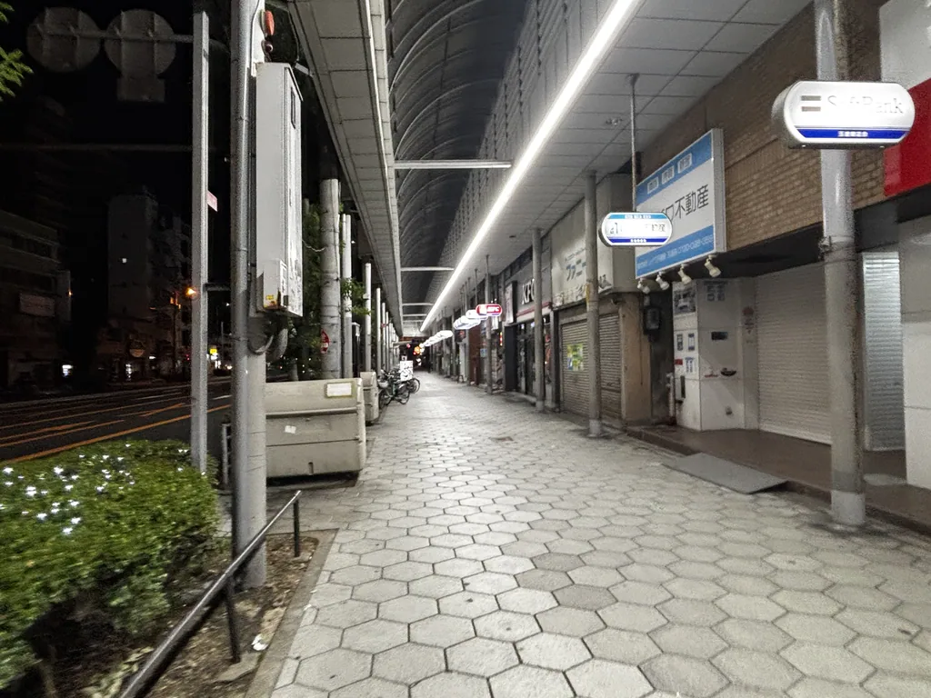 一駅も歩いていないのに急にこの暗さ。ガヤガヤどころかスン...とした雰囲気が広がっています。