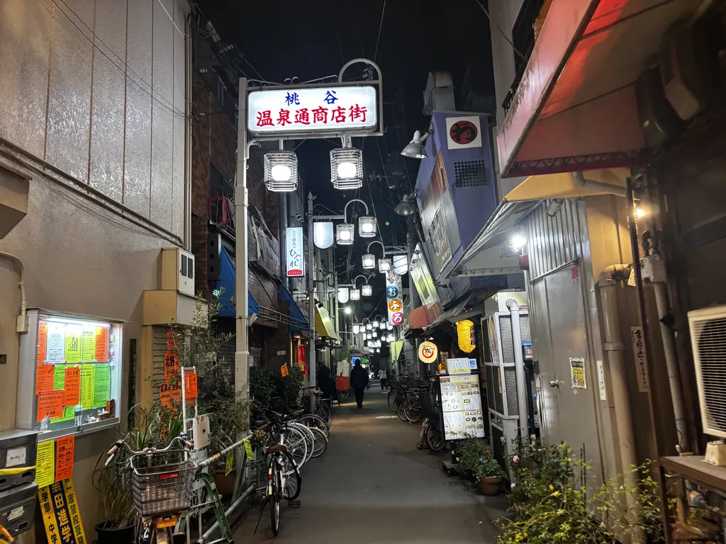 桃谷駅には温泉通商店街というそそられる名前の通りが。どの駅も同じようなガヤガヤに見えてちゃんと個性がある。