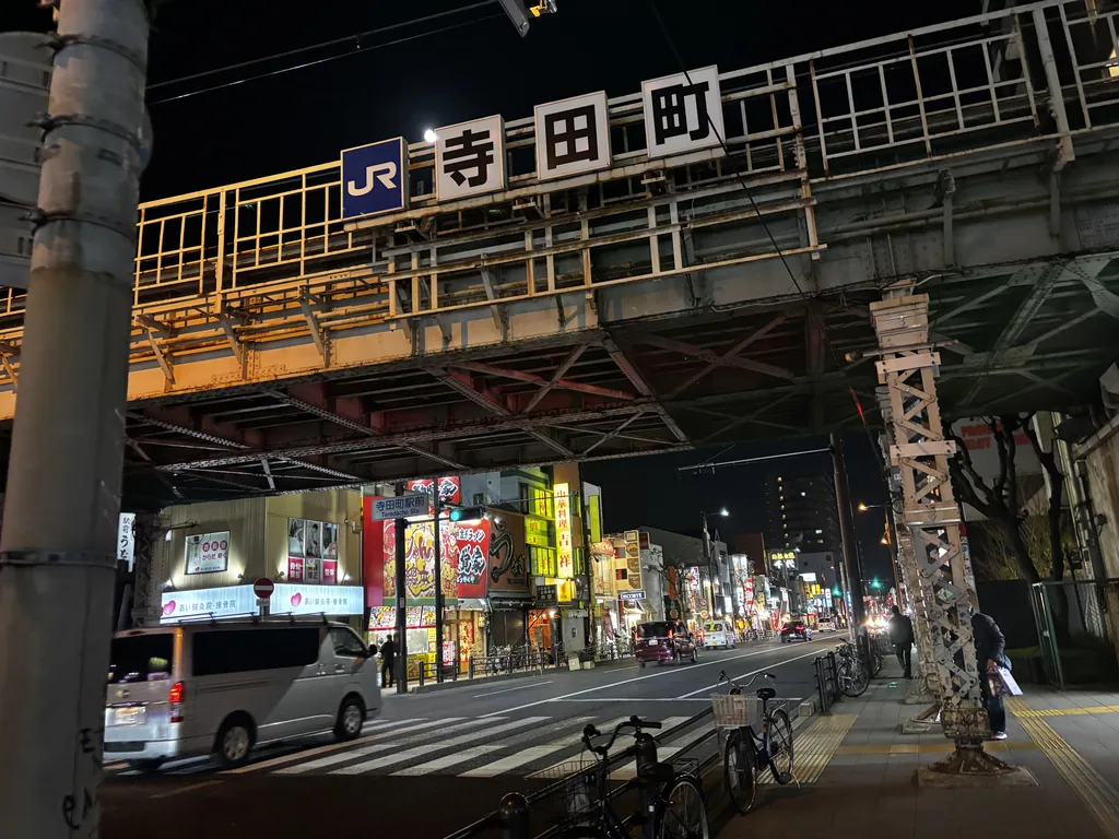 10駅目の寺田町駅に到着。ついに半分に到達です。駅前はややガヤガヤって感じです。ややガヤ。