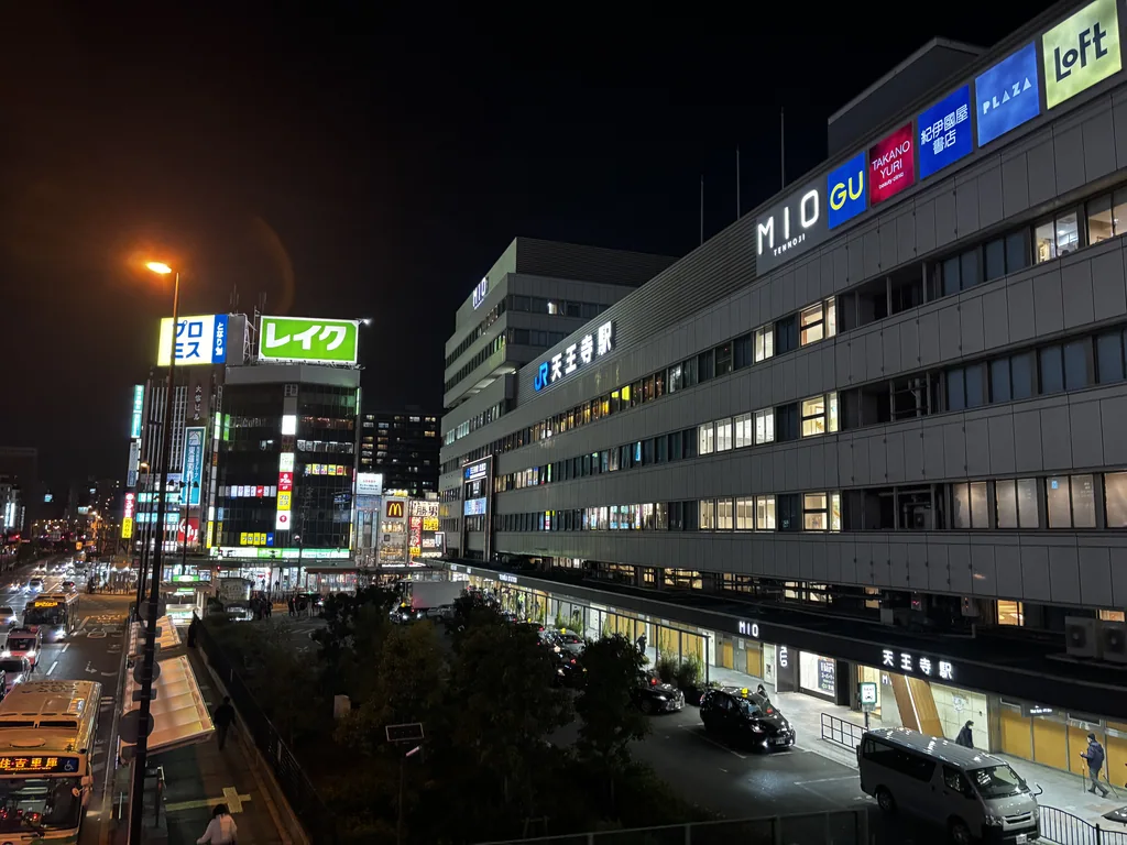 11駅目、天王寺駅に到着です。先ほどのあべのハルカスはこの駅と直結しています。