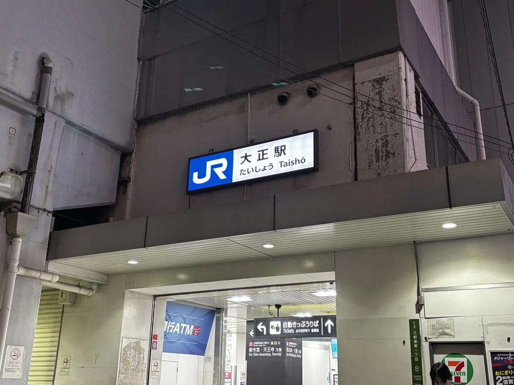 15駅目の大正駅に到着。そういえば平成最後の昭和の日に大正駅で明治のR-1を飲むみたいなやつ流行ってませんでしたっけ。
