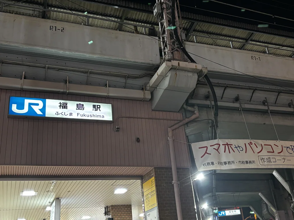19駅めの福島駅に到着。これで全ての駅前に到達。あとは大阪駅に戻ればゴールです。