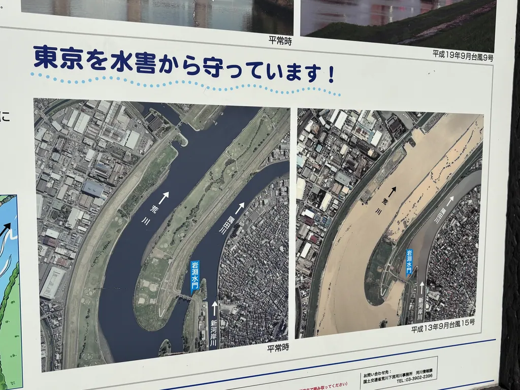 この看板には荒川と隅田川の関係性がわかりやすく書かれています。