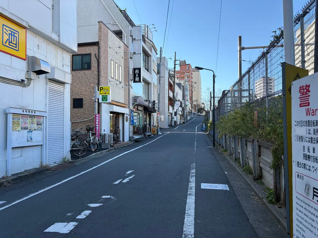 坂というかもはや崖です。しかし、崖の下には閑静な住宅街が広がっており、住みやすそうでもあります。