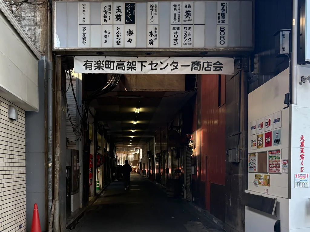 有楽町はマルイやイトシアといったファッションビルが立ち並ぶ、買い物スポットの印象があります。それらを横目に歩いていると、知らない道が出てきました。