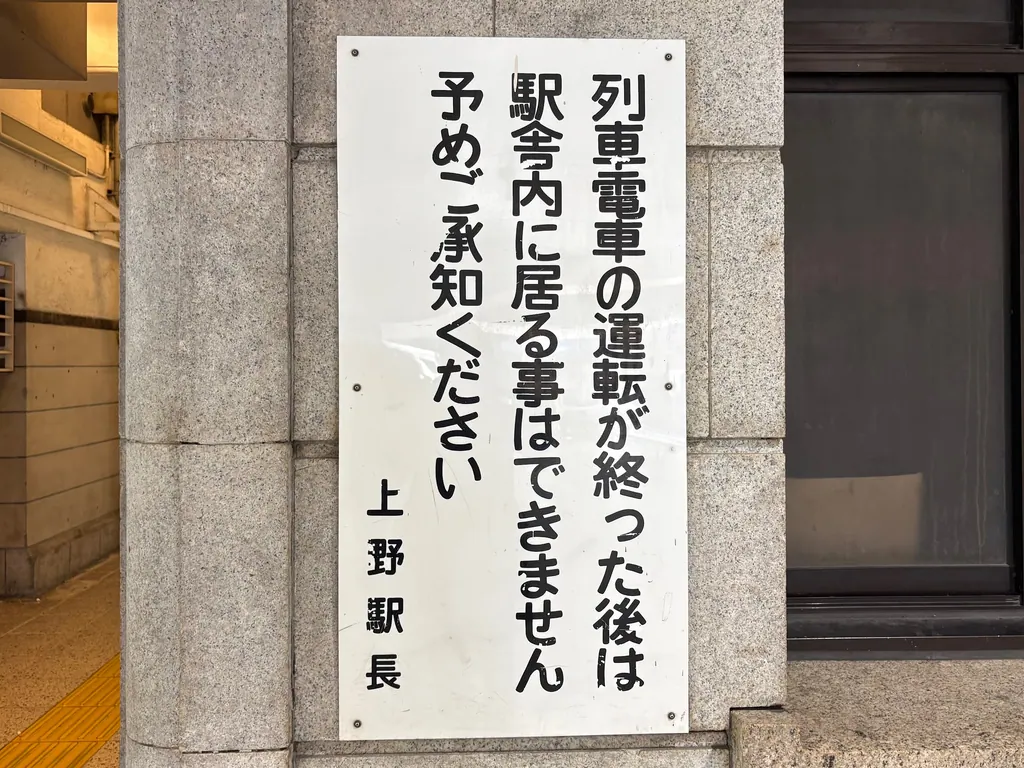 上野駅は歴史が古く、その名残を感じる痕跡をちらほら見かけます。「列車」があった時代からこの看板はあるのでしょう。「ん」のフォントがニョロニョロしていて好感が持てます。上野駅の家賃相場は1K10.9万円でした。
