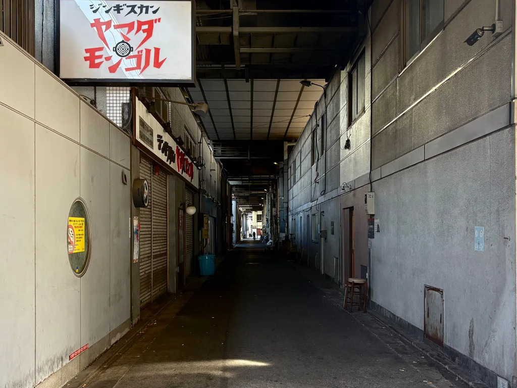 有楽町の高架下と同じようなストリートです。こちらにはいくつか店がありましたが、この日は閉まっていました。ジンギスカンはかなり興味があります。